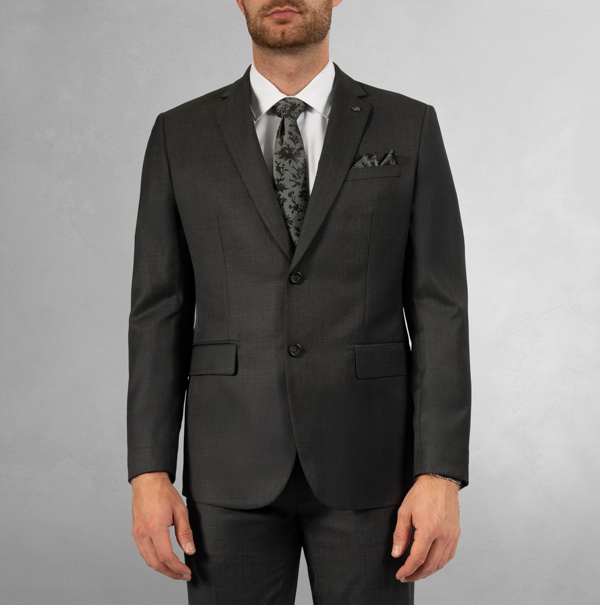 This men's blazer is crafted from a durable stretch wool blend fabric, treated with Teflon to protect against liquid spills. Complete the look with our matching pants (style B54630P), available in a variety of sizes. Sold separately for a perfect fit